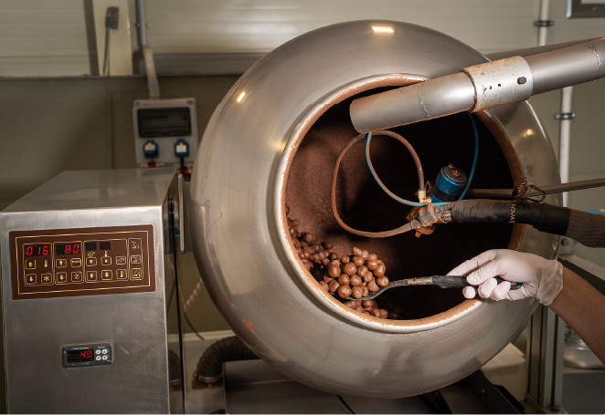 What followed was an intense period of long days, business trips, and late nights refining recipes and perfecting techniques – driven by an unshakable belief that their chocolate would bring joy to many. This dedication culminated in the launch of dragée and nougat production in Statinky, Moravia.
