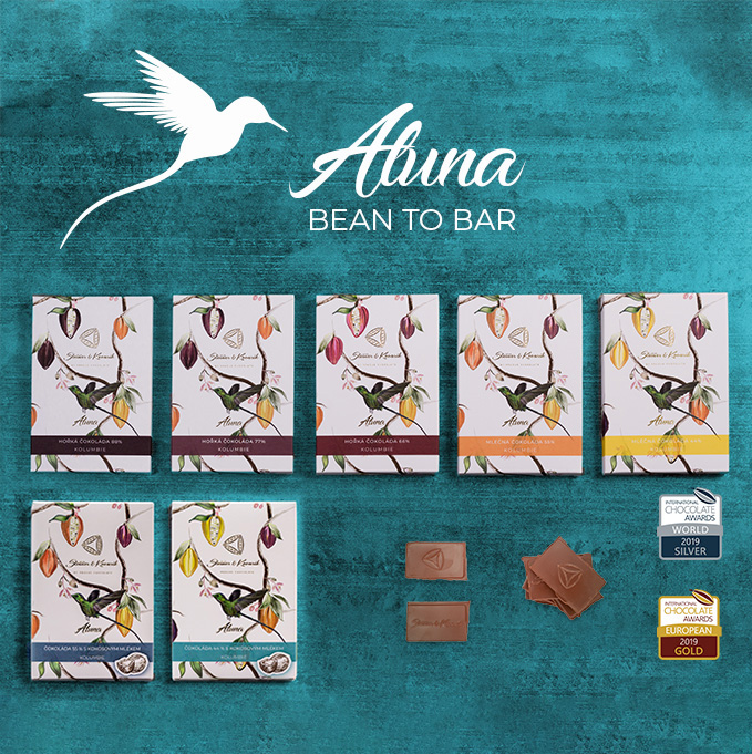 To accentuate the originality and uniqueness of these Bean to Bar products and to show the beauty of the story, the packagings of Aluna chocolate bars feature a truly stylish decoration – a motive of a unique species, the hummingbird.