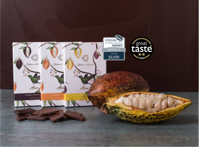 Bean to bar chocolates offered in our Aluna series is our dream come true! They are made in the heart of Prague from premium Colombian cocoa beans grown at a family farm run by Juan Gonzáles.